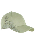 100% polyester; 100% cotton, brushed chino twill; Camo - 60% cotton/40% polyester; Structured front; Pre-curved visor; Hook and loop backstrap; Detailed embroidered wildlife scene on right side; DRI DUCK embossed leather patch left of back vent; Imported;