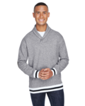 9.25 oz., 80% cotton 20% polyester heathered fleece; 1x1 yarndyed cuffs and waist; Unique shawl collar design; Contrast fleece elbow patches; Set-on pouch pocket;