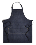 8 oz., 70% cotton, 30% polyester twill; contrast stitching; antique brass and silver rivets; four pocket compartments; 42" long self fabric ties; 34" L x 28" W; adjustable buckle on neckband for height adjustment; Oeko-Tex® Standard 100 certified; WRAP certified;