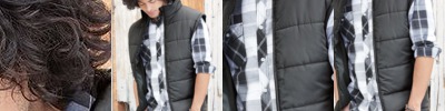 - Raw-edge hood opening, pocket seams, cuffs, waistband, zipper placket and side seams