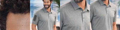 - Grey Three Heather/Black and True Blue Heather/Grey Three are 88/12 polyester/elastane
