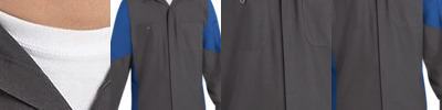 - One-piece, topstitched, lay-flat collar › Hemmed-sleeve ends