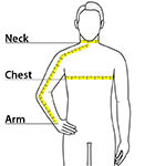 | Chest | 34 1/2-38 | 38 1/2-42 | 42 1/2-46 | 46 1/2-50 | 50 1/2-53 | 53 1/2-56 |