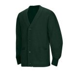 Unisex Cardigan Sweater, 100% Acrylic flat knit has 4 button placket and two functional welt pockets. Machine washable