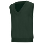 Unisex V-neck pullover sweater vest with half Milano stitch and turn-back ribbed V-neck collar, armhole and hem. No pill, easy care 100% Acrylic knit
