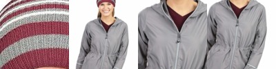 - Adjustable, zip-removable rain hood with hook and loop closure and toggles