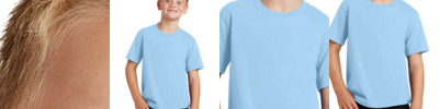 - 5.5-ounce, 50/50 cotton/poly (preshrunk)