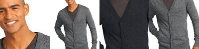 Give your crewneck sweater a break and opt for this modern, two-toned cardigan.