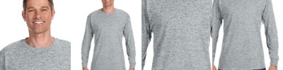100% ComfortSoft® cotton; Double-needle stitching throughout; Seamless rib at neck; Rib knit cuffs and shoulder-to-shoulder tape; Dyed in the USA; No two are exactly alike; Wash separately;