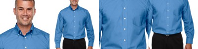4.1 oz., 60% cotton, 40% polyester; fine yarn count shirting; true Non-iron performance straight from the dryer; stain release finish; Classic Fit for professional appearance; pearlized buttons; patented pucker-free taped seams; specially fused collar, cuffs and placket; split back seam with bias cut back yoke; rolled button-down collar; adjustable "Comfort Collar" for up to an inch of stretch at neck; left-chest pocket;