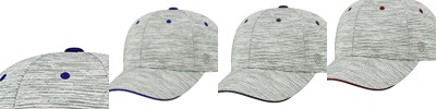 97% polyester/3% spandex lightweight mid profile six panel cap; Look and feel texture of wool; Hypoallergenic with moisture-wicking ability; Superior drying; 3 ½” crown structured with hard buckram backing; Six sewn eyelets; Eight rows of stitching on Permacurv® visor;