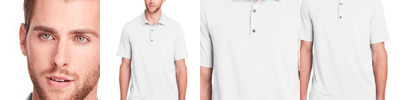 5 oz./yd2 / 172 gsm, 100% polyester face plaited to 60% polyester, 40% cotton back (total overall garment 61% polyester, 39% cotton); Proprietary dual-sided mesh pique knit constructed of fine denier wicking polyester on the outside and soft-as-cotton wicking blend on the inside; Moisture-wicking performance with UV 15-39 protection; Matching flat-knit collar; Luxury, comfort and performance in one; Stylized open placket; Curved back yoke with center pleat;