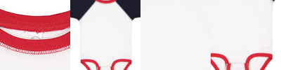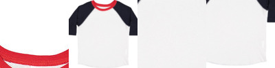 50% cotton, 50% polyester jersey knit; New fit for greater comfort; Contrast color 1x1 rib-knit collar; Tear away label; Contrast color raglan sleeves; Double-needle hemmed sleeves; Serged fishtail bottom;