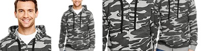 6.8 oz.; Green Camo: 100% cotton; Black Camo/Blk & Solid Blk: 70% cotton, 30% polyes@er; Enzyme washed; Black drawstring; Front pouch pockets; Rib bottom and cuffs; Nylon zipper;
