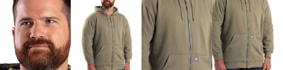 9 oz., 60% cotton/40% polyester fleece; 5 oz., thermal lining; Two-needle stitched main seams; Nylon front zipper; Double layered three-piece hood; Oversized front pockets; Knit cuffs and waistband; Reinforced bartacks at stress points;