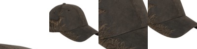 100% cotton, brushed chino twill; Camo - 60% cotton/40% polyester; Waxy - polyester/cotton/polyurethane blend; Blaze - 100% Polyester; Structured front; Pre-curved visor; Hook and loop backstrap; Detailed embroidered wildlife scene on right side; DRI DUCK embossed leather patch left of back vent; RealTree Max 4 is a mesh back cap;