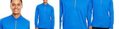 4.5 oz/yd2 / 160 gsm, 100% polyester mélange jersey; Moisture-wicking and antimicrobial performance; UV 15-39 protection; Center front translucent zipper; Contrast coverstitching; Reflective piping details;