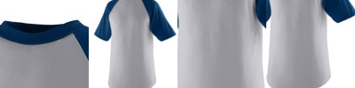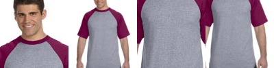 5.2 oz., 50% combed ringspun cotton, 50% polyester pre-shrunk jersey; Moisture wicking for all day comfort; Made with sustainably sourced USA grown cotton; Contrast bound collar; ¾ raglan sleeve; Shirttail drop with a serged hem; Tear-away label; Side-seamed; Jerzees styles are manufactured using sustainable protocols which are measured and reported annually by Fruit of the Loom, Inc.; Jerzees styles are manufactured with the commitment to enriching lives for people and communities which is measured and reported annually by Fruit of the Loom, Inc.;