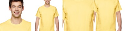 6 oz., 100% USA cotton, 18 singles; Heather Grey is 90% USA cotton/10% polyester; Charcoal Grey, Safety Green, and Lime are 50% USA cotton/50% polyester; Shoulder-to-shoulder neck tape; 1" double-needle stitched sleeve and bottom hems; Tear away label; 7/8" Seamless non-topstitched collar; Quarter-turned to eliminate center crease; Forward-thrusted shoulder seam for comfortable neck fit; Classic fit;