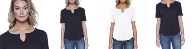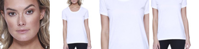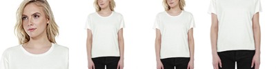 3.5 oz., 100% combed and ring-spun liquid cotton; 40 singles; Optimal stretch and recovery; Fashion fit; Side seams; U-neck; Scalloped hem; Loose fit; Tear-away label; Made in a W.R.A.P. certified factory;