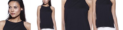 3.5 oz., 100% combed and ring-spun liquid cotton; 40 singles; Optimal stretch and recovery; Fashion fit; Side seams; Perfect drape; Slim shoulder straps; Gradual flare to scalloped hem; Tear-away label; Made in a W.R.A.P. certified factory;