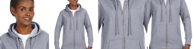 6.49 oz./yd2 / 220 gsm, 100% polyester mélange jersey bonded with fleece; Center front coil zipper with semi autolock slider ; Front and back princess seam for flattering feminine fit; Front hand-warmer pouch pocket; Tonal coverstitch details at shoulders;