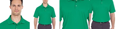 4.4 oz., 100% polyester mesh piqué; Moisture-wicking; UV protection; Fully taped flat rib-knit collar; Half-moon patch; 3-button placket with dyed-to-match buttons; Double-needle flat-lock stitching at shoulders;