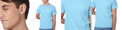 100% preshrunk ComfortSoft® cotton; Double-needle coverseamed neck; Taped shoulder-to-shoulder with ribbed knit cuffs; Tag-free neck label; Ash is 99% cotton, 1% polyester; Light Steel is 90% cotton, 10% polyester;