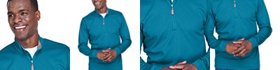 7.7 oz./ydý / 260 gsm, 100% cotton interlock with EZ Cool wicking technology; DRYTEC20™ technology offers no-pill, no-fade, no-shrink, no-curl collar, no-wrinkle performance; Active fit; Self fabric inside placket with chin guard; Inner collar in contrast self fabric; Center front coil zipper with autolock slider and faux leather pull; Rib-knit cuffs and bottom opening;