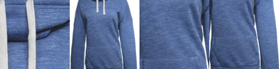 7.25 oz. 60% cotton, 40% polyester melange fleece; Fabric lined cowl neck; Front chest & back yoke; Front pouch pocket; Rib waist & cuffs;