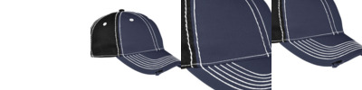 100% cotton twill with contrasting back panels; Heavy enzyme wash; 6-panel; Unstructured; Low-profile; Self fabric top button matches back panel color; Self fabric closure with silver sliding buckle and tuck in tunnel; Eyelets match heavy contrast stitching; Heavy raised white contrast color stitching; Pre-curved visor with heavy distressing;