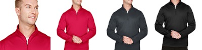 100% polyester wicking knit; Wicks moisture away from body; Color secure technology helps prevent dye migration; Set-in sleeves; Quarter-zip pullover style; Tear away label;