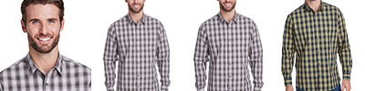 3.4 oz., 100% cotton yarn-dyed poplin; semi-fitted styling; contrast checked pattern; narrow-soft collar; roll sleeve option with button and tab fastening on upper arm; single button cuff and sleeve guard for long-sleeve styling; curved hemline; Oeko-Tex® Standard 100 certified; WRAP certified;