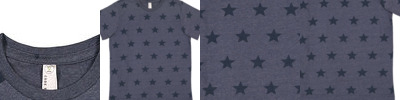 - 4.5 oz., 60% combed ringspun cotton, 40% polyester vintage fine jersey with printed star pattern