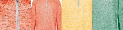 87% polyester, 13% elastane heathered wicking knit with Coolcore technology, 92% polyester knitted mesh, 8% elastane wicking knit inserts with Coolcore technology
