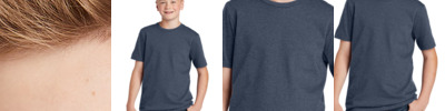 - 4.4-ounce, 75/13/12 poly/cotton/rayon jersey with PosiCharge technology