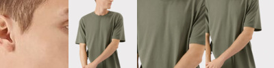 - Double-needle cover-seamed neck with lay flat, ribbed, set-in collar