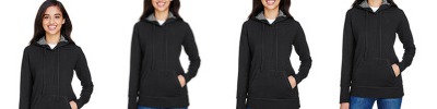 7 oz.; 100% Spun Polyester fleece fabric; Self-fabric cuffs; Contrast hood lining; Side-entry pockets; Underarm an side gusset panels;