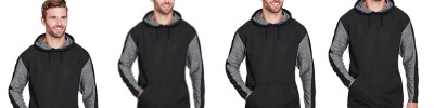 8.5 oz. 60% cotton, 40% polyester fleece; Triple-needle contrast accent stitching; Contrast jersey hood lining and drawcord; Raglan sleeves; Front pouch pocket;