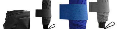 - Promotional manual folding umbrella with 42" arc and PU accent strap closure