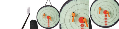 - Easy-to-fold target with a suction cup for hanging in flat surfaces