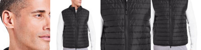 Shell: 100% recycled nylon; Inner Fill: 79% recycled nylon, 21% elastane; Water-resistant finish; 1.75" horizontal quilt lines; Reverse coil zipper with 2-way puller; Sewn in label at back neck; Stretch binding finish around armholes and at bottom opening; Top shoulder panels with vertical quilt lines; Silicone logo patch at upper back under neck seam; Side pockets with brushed knit bags; Sewn-in care and content label at lower left side seam; Relaxed fit; Fabric and garments are manufactured in a facility 100% powered by solar and wind energy. Fabric and garments are manufactured in a GreenCo certified facility. 450g of CO2 are saved with the production of each garment ;