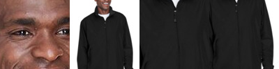 2.7 oz./yd² (US), 4.5 oz./L yd (CA), 100% 240T polyester Lining: 100% polyester mesh in upper back Water resistant finish Roll-away hood Adjustable cuffs with tabs Adjustable shock-cord at hood and hem Vented back yoke