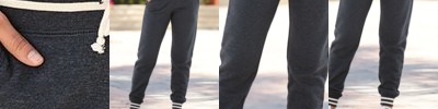 - 1x1 ribbed knit gussets, cuffs and waistband