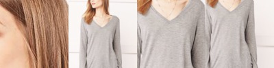 - 2x1 ribbed collar, V-notch, cuffs and waistband