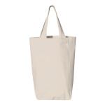 840D poly two-tone PU Spacious main compartment with organization panel Easy-access padded laptop/compartment with fleece-lined, brushed tricot tablet sleeve Interior organization pockets Dual side mesh beverage pockets Ergonomic adjustable air mesh shoulder straps Reflective piping on front, handle and shoulder straps for increased visibility Integrated webbing luggage trolley strap on back Dimensions: 19'h x 10.5'w (top) x 13.5'w (bottom) x 9.5'd Capacity: 1,464 cu. in./24 L Weight: 1 lb./1.2 kgs Laptop sleeve: 15'h x 11'w; fits most 17' laptops Note: Bags not intended for use by children 12 and under.