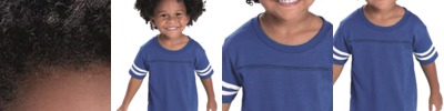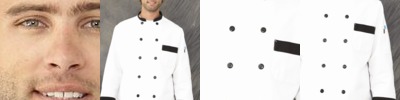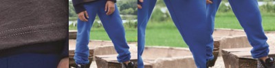 - Self-material, two color, set-in collar, coverstitched for appearance