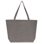 - Zippered main compartment has large U-shaped opening with two zipper pulls